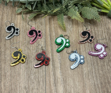 Glitter Acrylic Dangle Fishook Earrings - Bass Clefs