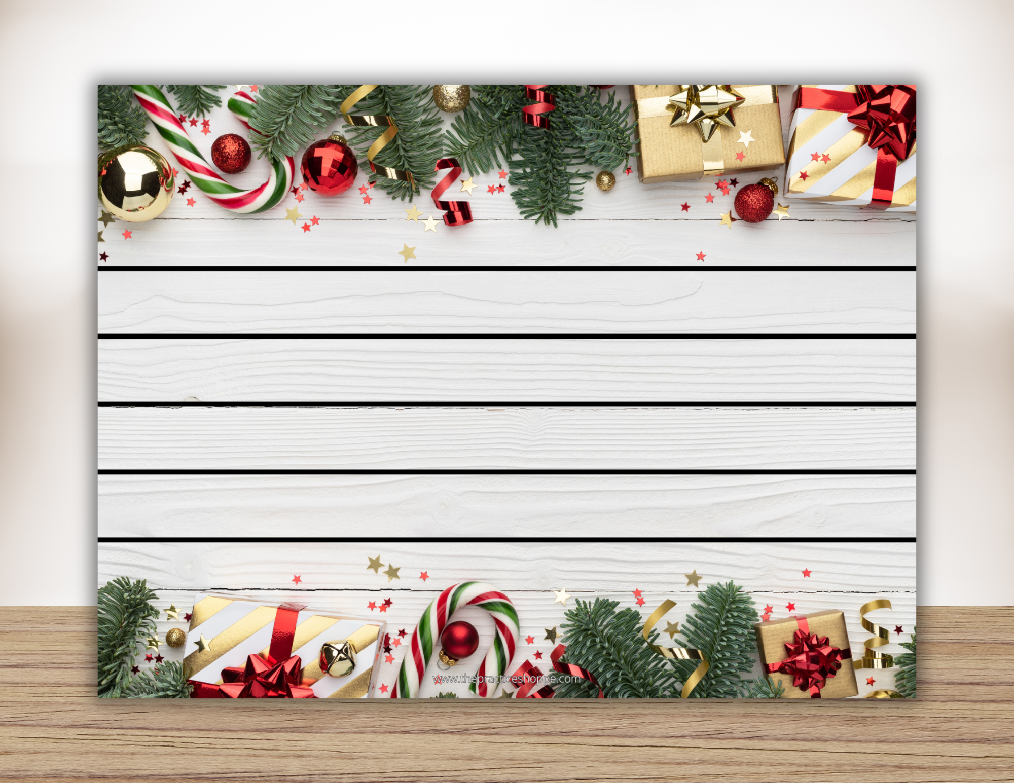 Making music is more fun during the holidays with a holiday themed staff white board. Use it with ornaments or 1 inch discs.